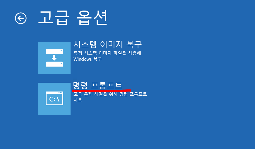 고급 옵션 - 명령 프롬프트 선택