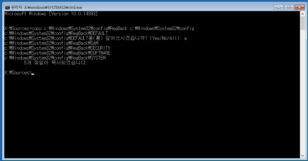 2. CMD 에서 레지스트리 파일 복사