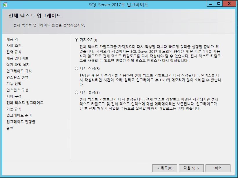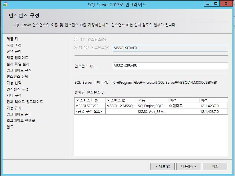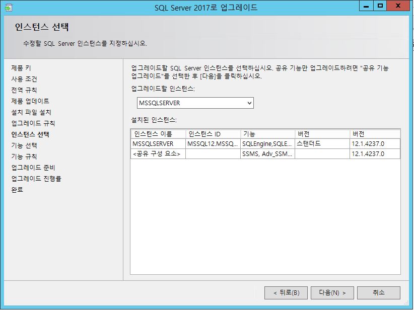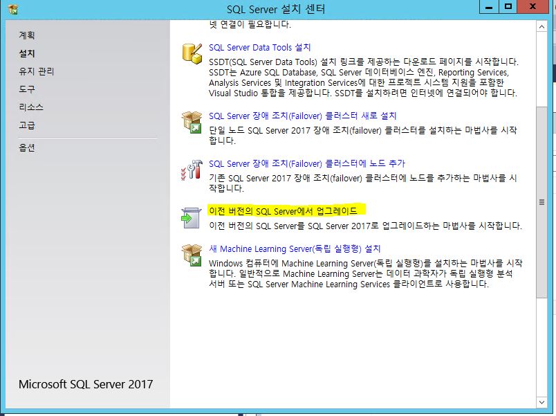 3. 이전 버전의 SQL Server 에서 업그레이드 선택 후 순차 진행.
