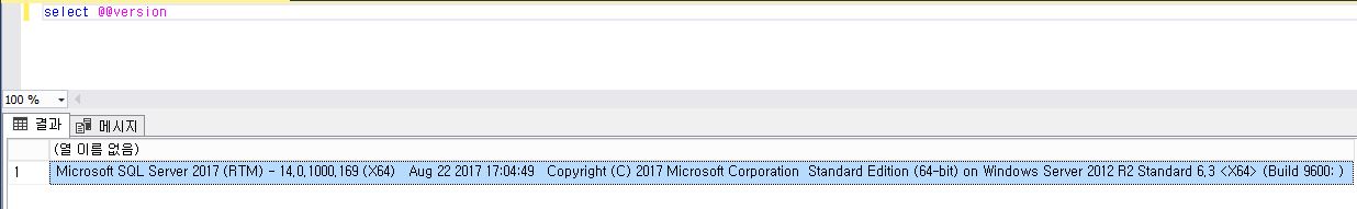 변경 된 버전 : Microsoft SQL Server 2017 (RTM) - 14.0.1000.169 (X64)