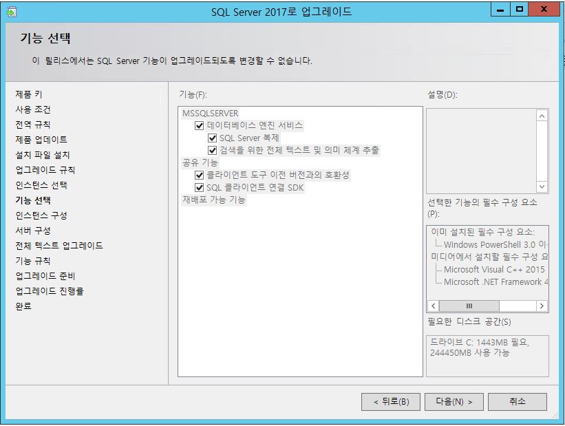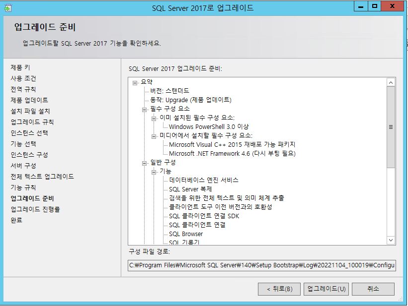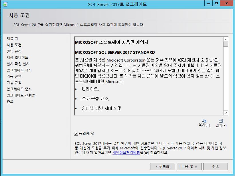 업그레이드 진행 중에는 SQL 및 에이전트 서비스가 중지되었다가 재실행 되므로, 실제 운영 중인 DB 서버에서 진행시 외부 연결 차단 후 진행을 권장.